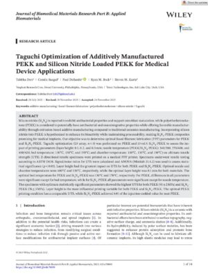 J Biomed Mater Res – 2025 – Derr – Taguchi Optimization of Additively Manufactured PEKK and Silicon Nitride Loaded PEKK for December 17, 2025 Published by: Ranjan Chari